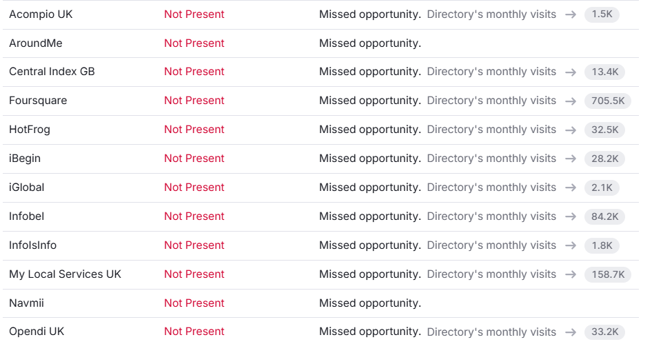 We target a mix of important directories, industry-specific directories, and trusted online platforms.
